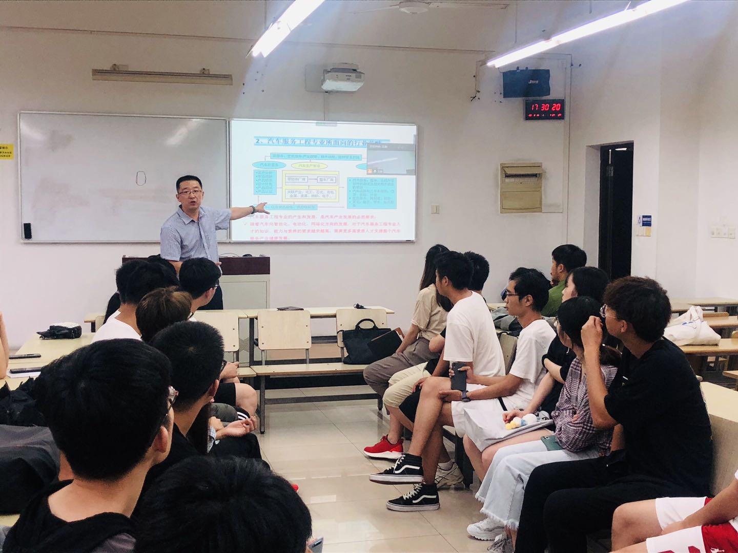 会上,汽车服务工程系主任马其华老师为同学们做了新学期动员,他分享了汽车服务工程系的发展历程,分析了近年学生就业情况,鼓舞同学们应树立对本专业的自信,努力学习,寻找适合自己的发展方向,在课余之时,积极参与各类竞赛,积攒竞赛经验,提高自身的专业能力,为未来就业、考研打下坚实基础。汽车服务工程系教导主任骆佼老师结合近期同学们选课情况,希望同学们在学有余力之时,可以多听多学多看,多选择一些专业选修,提高自己的专业能力,丰富课余生活。