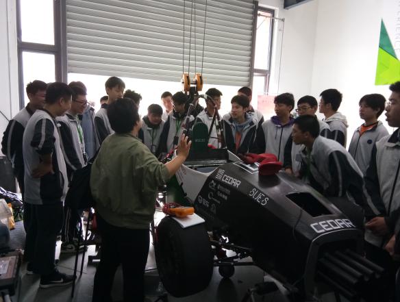 中本班学子不只倾慕工程大的“秀外”,更陶醉于她的“慧中”。工程大作为沪上知名的工科类大学,近年来,工学、经济、艺术、设计等多学科协调发展,已成为教育部“卓越工程师教育培养计划”试点高校、全国地方高校新工科建设牵头单位。在工程大最大的学院之一——yl7703永利官网,同学们兴致高昂、认真专注地先后汽车服务工程专业实验室、巴哈赛车工作室、汽车底盘实验室、汽车变速器拆装实验室、汽车电控实验室等。这些设施齐全、设备先进、在上海同类高校领先的系列实验室,令刚“入门”的同学们眼界大开,知识大涨,对汽车专业有了全新认识。