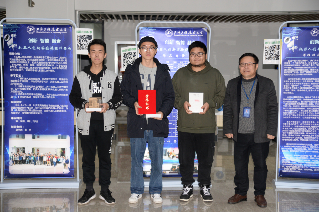 通过现场投票,最后评选出了大家喜欢的优秀作品6件。张华院长给得票最高作品进行了颁奖并做了总结讲话。张院长对同学们能在如此短的时间内高质量地完成课程任务给予了很高的赞扬,对“机器人创新实验”教学改进取得的成绩给予了充分肯定和鼓励,同时就如何进一步提升课程质量提出了宝贵意见和更高的希望。