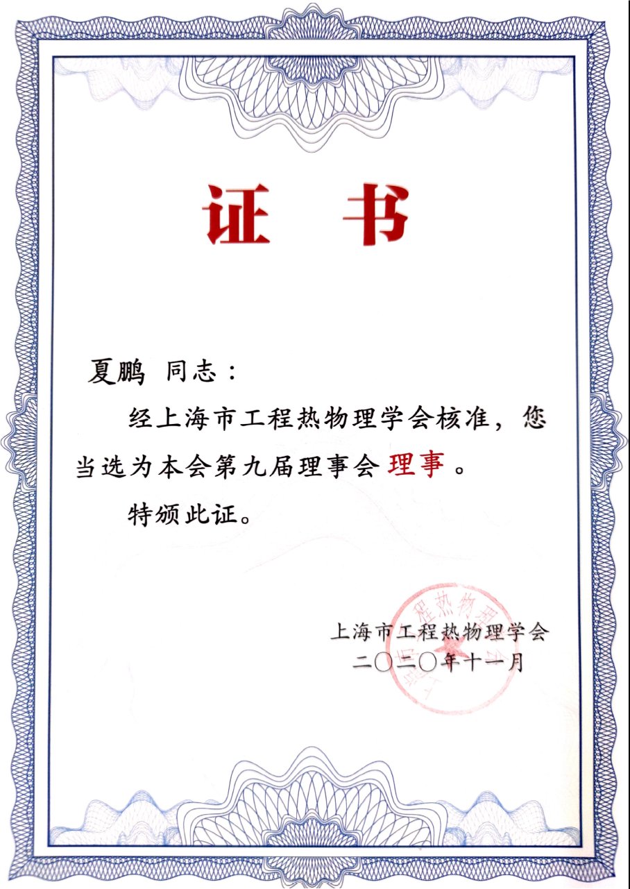 本次会议选举了新一届学会理事会和监事会,永利官网yl7703永利官网姜小敏教授获聘荣誉理事,夏鹏副教授当选上海市工程热物理学会第九届理事会理事。