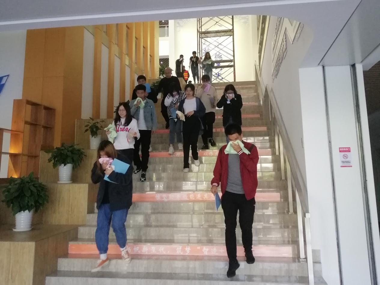 本次消防逃生演练模拟了8B317实验室发生火灾,师生紧急疏散。演练开始前何涛副院长给全体师生进行了简短的安全教育,指出了实验室目前存在的一些安全问题。杨慧斌副主任介绍了火灾逃生的基本知识和注意事项。演练开始后,各楼层导护教师协助安抚稳定学生情绪,指导帮助学生做出正确逃生姿势。消防逃生过程紧张、有序,师生们用湿毛巾捂住口鼻,弯腰小步快走,按照预定的安全路线进行有序撤离。