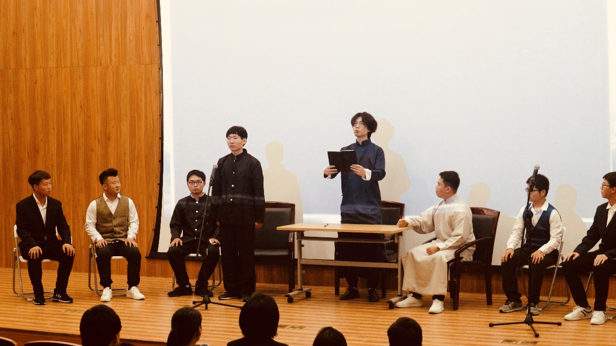 “我这杯敬一敬我们58位中国共产党人,在这条注定血雨腥风的路上,我们不知道前路是什么,但是我们相信,我们中国的未来一定会焕然一新”,共产党人救国图存的信念在由中共一大历史真实改编的舞台剧《初心》中得到完美展现;在舞台剧《南昌起义》中,共产党人经多次商议从而提出的“武装农民”的决策和南昌起义的历史场景震撼了全场观众;《党史人物故事》中,陈独秀、毛泽东等人建党救国图存,钱学森勇创两弹一星等故事虽时隔多年但仍让人潸然泪下,感染着现场每一位观众,勉励当代大学生继承先辈精神,在青春中奋斗不止。