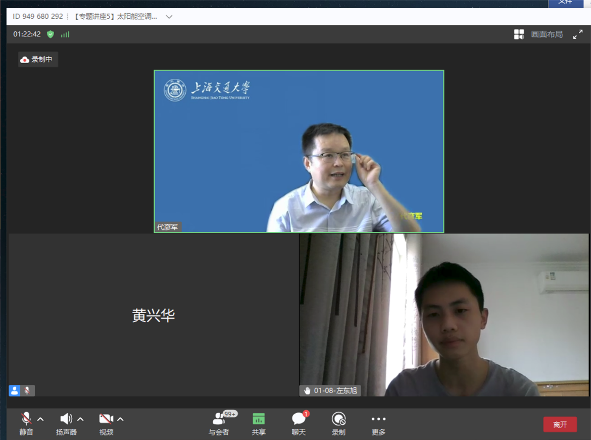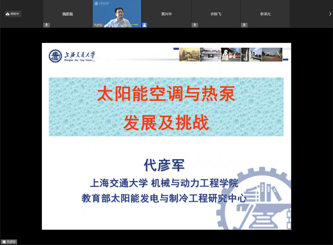 2021年8月30日9:00-11:00,通过华为云会议视频平台,上海交通大学教授代彦军为暑期学校做题为《太阳能空调与热泵技术发展与挑战》的线上专题讲座。讲座由yl7703永利官网副教授黄兴华主持。