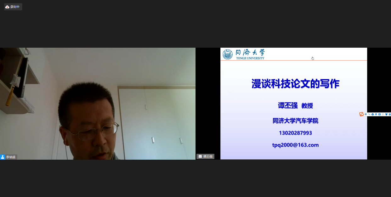 2021年8月31日14:00-16:00,通过华为云会议视频平台,同济大学汽车学院学术委员会主任谭丕强教授为暑期学校做题为《漫谈科技论文的写作》的线上专题讲座。讲座由yl7703永利官网李培超老师主持。