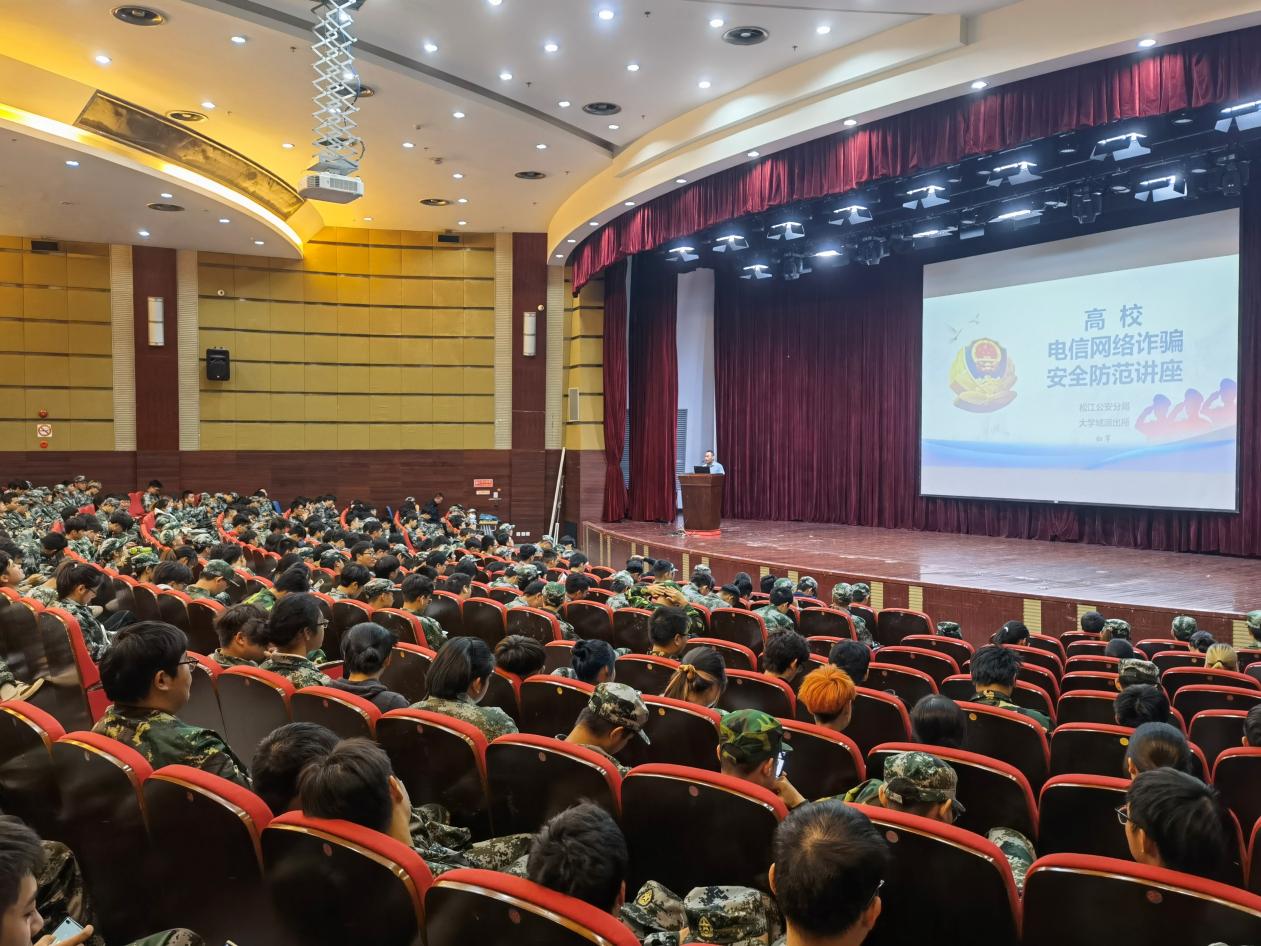本次安全教育活动还邀请了松江公安分局大学城派出所钮军警官进行了高校电信网络诈骗安全防范讲座。钮警官介绍了刷单诈骗等常见的电信诈骗手段,结合松江大学城高校学生受骗的实例,让同学们了解到电信网络诈骗的手段、危害和防范方法。