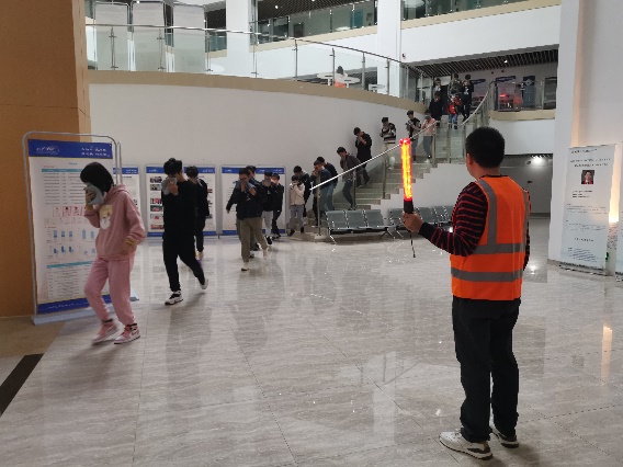 本次消防逃生演练模拟了8B325实验室发生火灾,师生紧急疏散。演练开始前马西沛主任给全体师生进行了简短的安全教育,指出了实验室目前存在的一些安全问题,近年来部分高校出现的安全事故,目前学院实验室常见的安全隐患,比如电瓶车实验室内充电、插排串接、违章电器等。杨慧斌副主任介绍了火灾逃生的基本知识和注意事项。演练开始后,各楼层导护教师协助安抚稳定学生情绪,指导帮助学生做出正确逃生姿势。消防逃生过程紧张、有序,师生们用湿毛巾捂住口鼻,弯腰小步快走,按照预定的安全路线进行有序撤离。