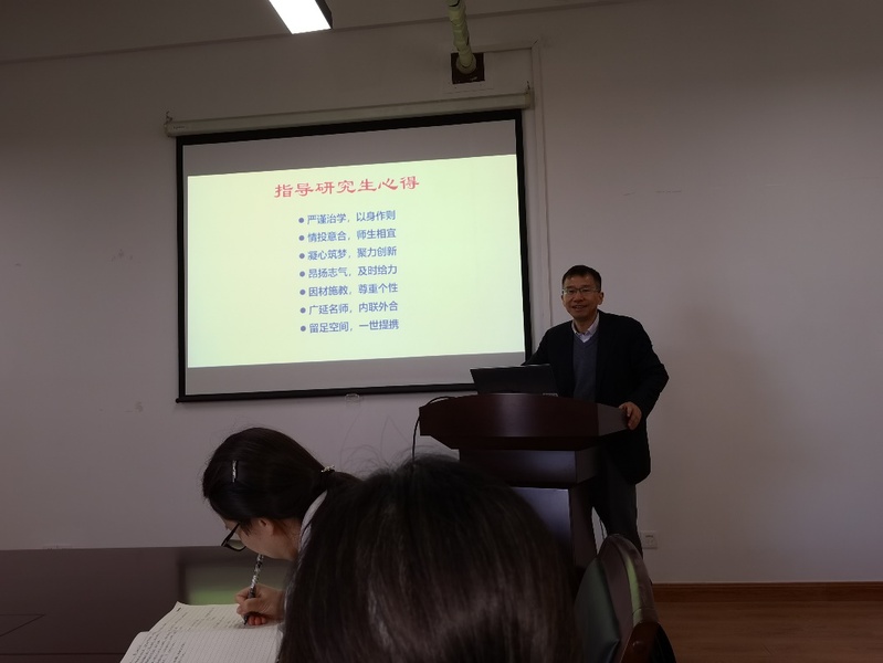 首先,郭辉副院长向与会的四十余名师生简要地介绍了曲绍兴教授。然后,曲教授分享了“凝心筑梦,聚力创新”为主题的研究生培养经验。曲教授结合其自身求学及指导研究生的经历,以及作为骨干成员获得浙江大学“五好”研究生导学团队的经验,从导师自身的学术与修为提升、研究生指导过程中应注意的事项谈起,以丰富实例阐述了团队文化、因材施教、交叉培养和国际化联合培养对等研究生指导的重要作用,为我院研究生导师在培养学生的方法方面提供了很好的参考。
