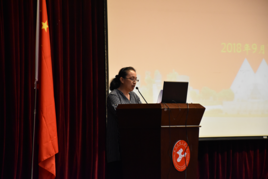 典礼现场请到优秀教师代表王明红老师,从全程导师的角度,为新同学描绘大学的蓝图。王老师从适应、规划、独立思考与大学精神等角度,指明了大学之道,相信全场观众都能在王老师的讲话中受益匪浅。