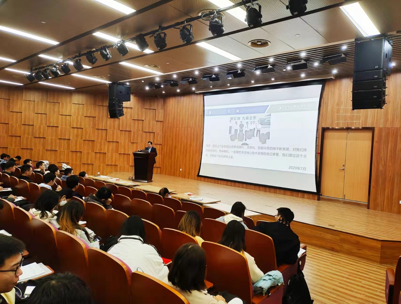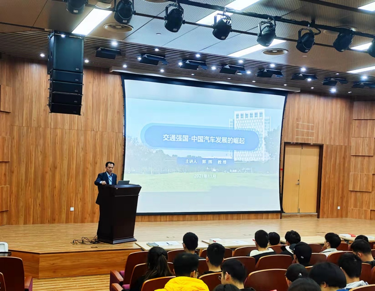 郭辉教授谈到,国际上汽车制造业竞争很激烈,信息化、智能化等趋势不断发展,对我们来讲有危有机,危中有机。一定要把关键核心技术掌握在自己手里,我们要立这个志向,把民族汽车品牌搞上去。在讲到汽车工业的发展历程时,除了世界汽车行业的四次变革,他着重讲了中国汽车发展的四个阶段,可以让我们更加深刻的理解中国共产党为什么‘能’,马克思主义为什么‘行’、中国特色社会主义为什么‘好’,正是因为党的正确领导才使中国汽车蓬勃发展。接下来郭辉教授给同学们讲解了汽车行业从单一燃油车到新能源汽车,再到智能网联,他从国家层面给同学们指明了汽车行业现在以及未来的发展趋势。从中国汽车行业的从无到有再到强,给同学们树立了无比的信心。