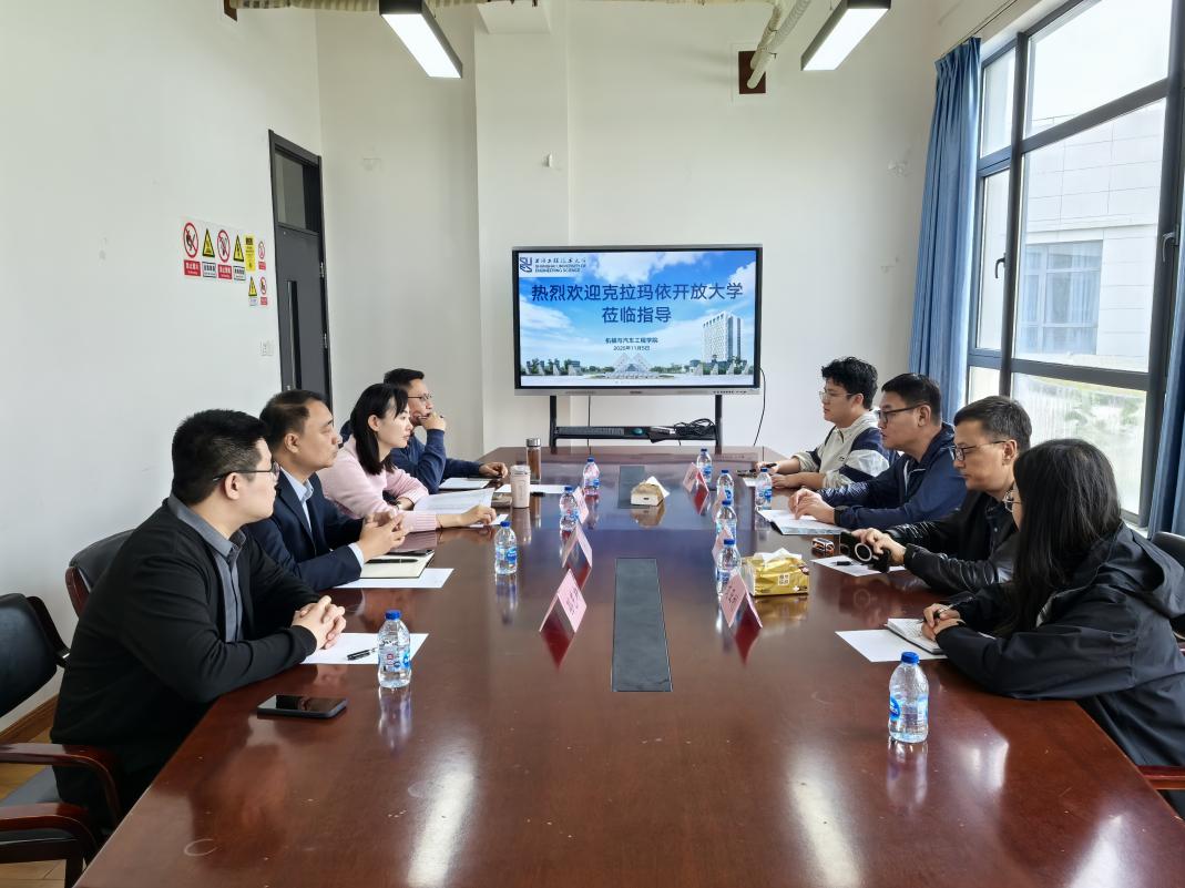 11月5日,克拉玛依开放大学沪克工匠教育合作办公室负责人叶晓波、考试中心负责人帕尔哈提·热合木一行莅临yl7703永利官网考察学习。学院党委副书记黄中子、汽车工程系主任刘飞、智能车辆工程系主任黄孝慈及辅导员孙艺轩参加交流。