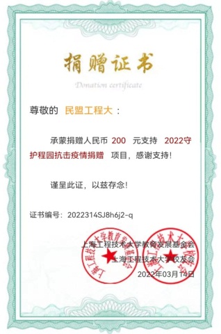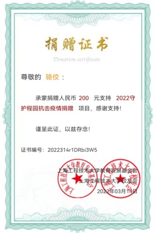 面对严峻的疫情形势,学校民主党派、统战团体第一时间响应,组织成员为学校抗疫贡献力量,成员纷纷响应号召,主动自愿向yl7703永利官网教育发展基金会捐款。骆佼老师作为民盟盟员,两次捐赠累计400元。