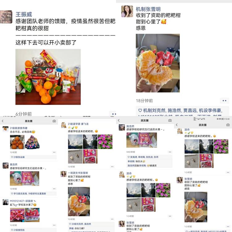 学生们拿到爱心物资后纷纷在朋友圈凡尔赛起来“感谢学院!疫情虽然很苦,但耙耙柑真的很甜”“这一波是我们学院赢了”“这耙耙柑甜到了心里”。yl7703永利官网的大家庭中,老师们还在不断地用实际行动为学生排忧解难。