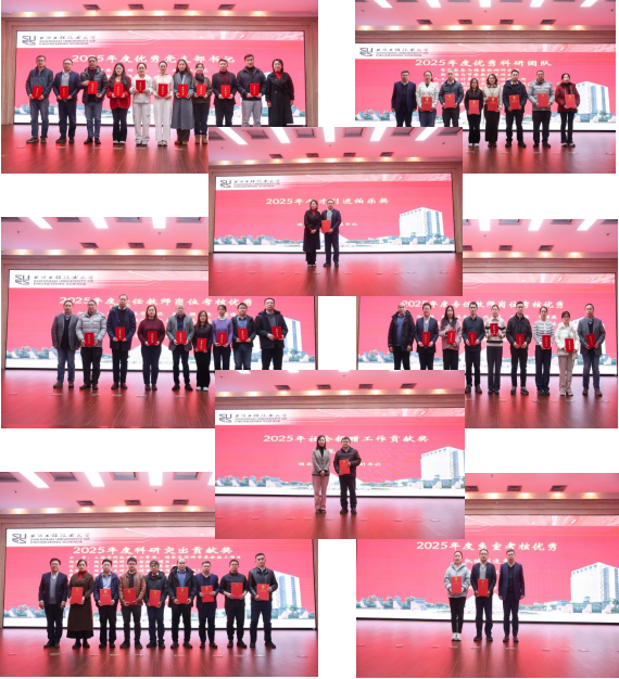 会上,学院为获得人才引进伯乐奖优秀党支部书记、考核优秀系室、优秀科研团队、社会捐赠工作贡献奖、科研突出贡献奖、岗位考核优秀专任教师颁发证书,表彰通报了学校2025年度考核优秀、师德师风考核优秀、优秀班主任(导师)、就业工作先进个人、献血先进个人名单