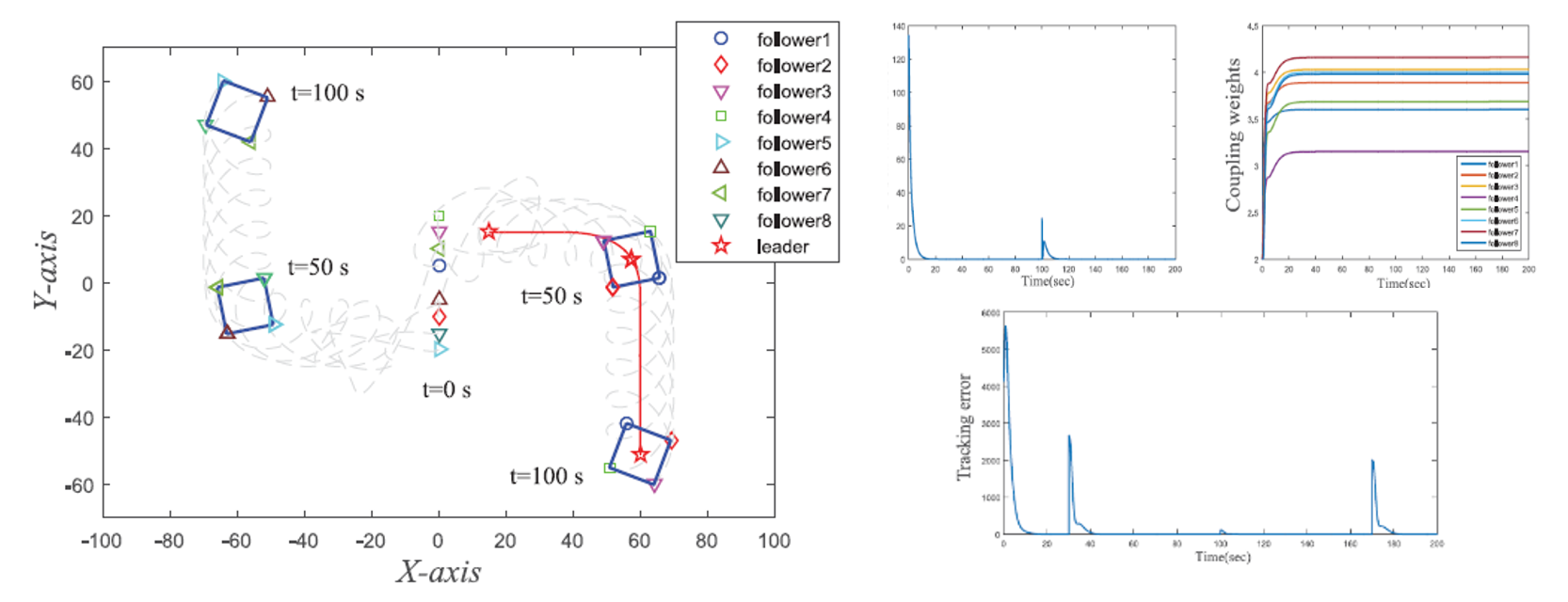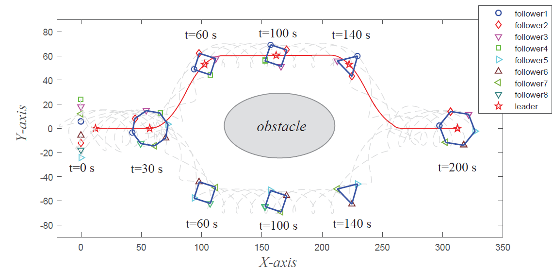 近些年来随着多无人机、多无人车等协同控制技术在军事和民用中发挥着越来越重要的作用,集群智能控制技术得到了飞速的发展,其中分布式多智能体编队控制技术是当前的一个研究热点。该文提出了一种新型的分布式状态观测器设计方案,使得多个智能个体在未知领导者输入的情况下实现一种具有对抗关系的编队队形。这一种编队队形包含两个位置时刻改变的子编队,且它们的编队几何中心具有对称关系。该控制算法仅利用智能体间的输出反馈信息,避免了通信网络图拉普拉斯矩阵的特征值的使用,从而可以实现分布式编队控制。在仿真部分,通过使用多无人车编队的实例展示了该分布式算法的可靠性。该项研究得到国家自然科学基金项目(61991412,61803256,62003207,61873318)的资助,合作者为华中科技大学苏厚胜教授和yl7703永利官网李晓航副教授。