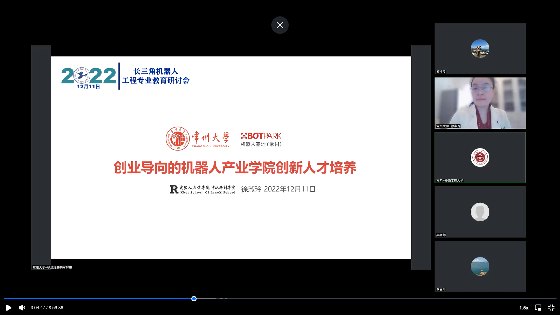 在“长三角机器人工程专业教育研讨会”主题特邀报告环节,周波、方明、陈春林、李秦川、徐淑玲、朱姿娜、刘瑀、李浩来、王豫平、秦志强等兄弟院校机器人领域专家从机器人工程专业人才培养模式、培养方案制定、机器人课程建设、师资队伍建设、机器人实践基地建设、机器人竞赛、校企产学研合作等进行了报告分享。