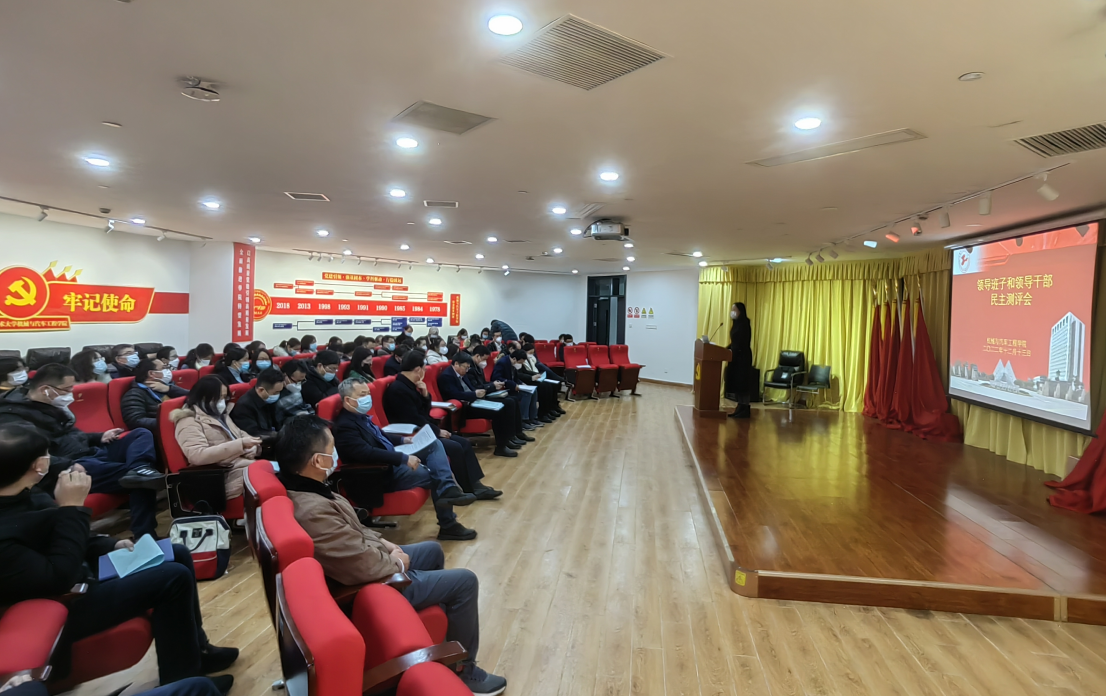 党的二十大报告强调,“树立选人用人正确导向,选拔忠诚干净担当的高素质专业化干部,选优配强各级领导班子”,为进一步加强领导班子和干部队伍建设,根据永利官网2022年度领导班子和领导干部民主评议以及干部工作“一报告两评议”的具体要求,12月13日下午,机械与汽车工程学院在交通大楼8B222开展2022年度领导班子和领导干部民主评议暨干部工作“一报告两评议”测评会。学院领导班子、党委委员、工会主席、各系室负责人、党支部书记、校、院教代会代表、学生代表等共同出席测评会。会议由学院党委书记虞蓉主持。