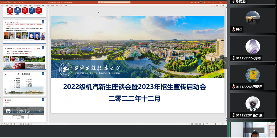 为扎实推进招生宣传工作,12月22日,yl7703永利官网线上举办2022级学生座谈会暨2023年招生宣传启动会。参加此次会议的有yl7703永利官网副院长张立强、机制系副主任吴建民老师、机电系副主任赖磊捷老师、汽车系副主任刘飞老师、汽服系副主任骆佼老师、能动系副主任王莎老师、学办主任聂红老师、2022级班主任、2022级学生代表。会议由副院长张立强主持。