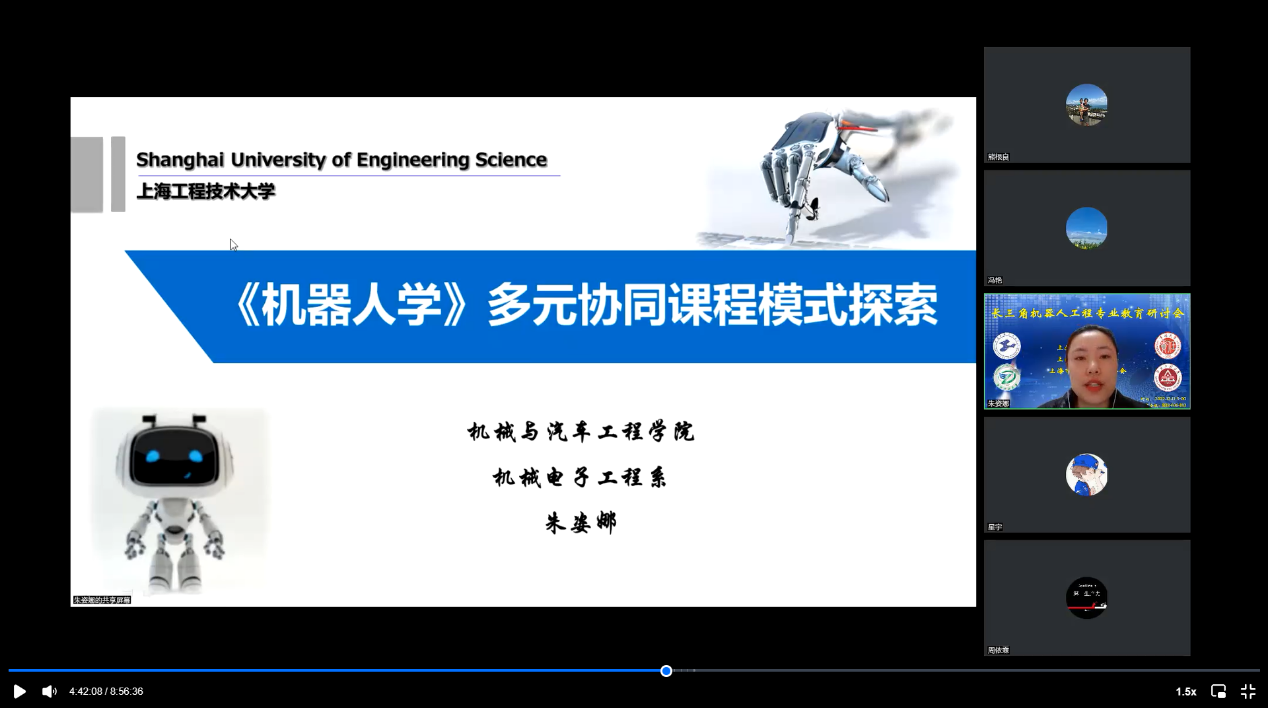yl7703永利官网yl7703永利官网机电系副主任朱姿娜副教授做了《机器人学多元协同课程模式探索》的报告,她从机器人学课程面临的问题、课程模式的实施与探索、课程已有建设成效、课程后续建设方向等方面进行详细讲述,是对疫情背景下,线上线下多元协同教学模式的有益探索。