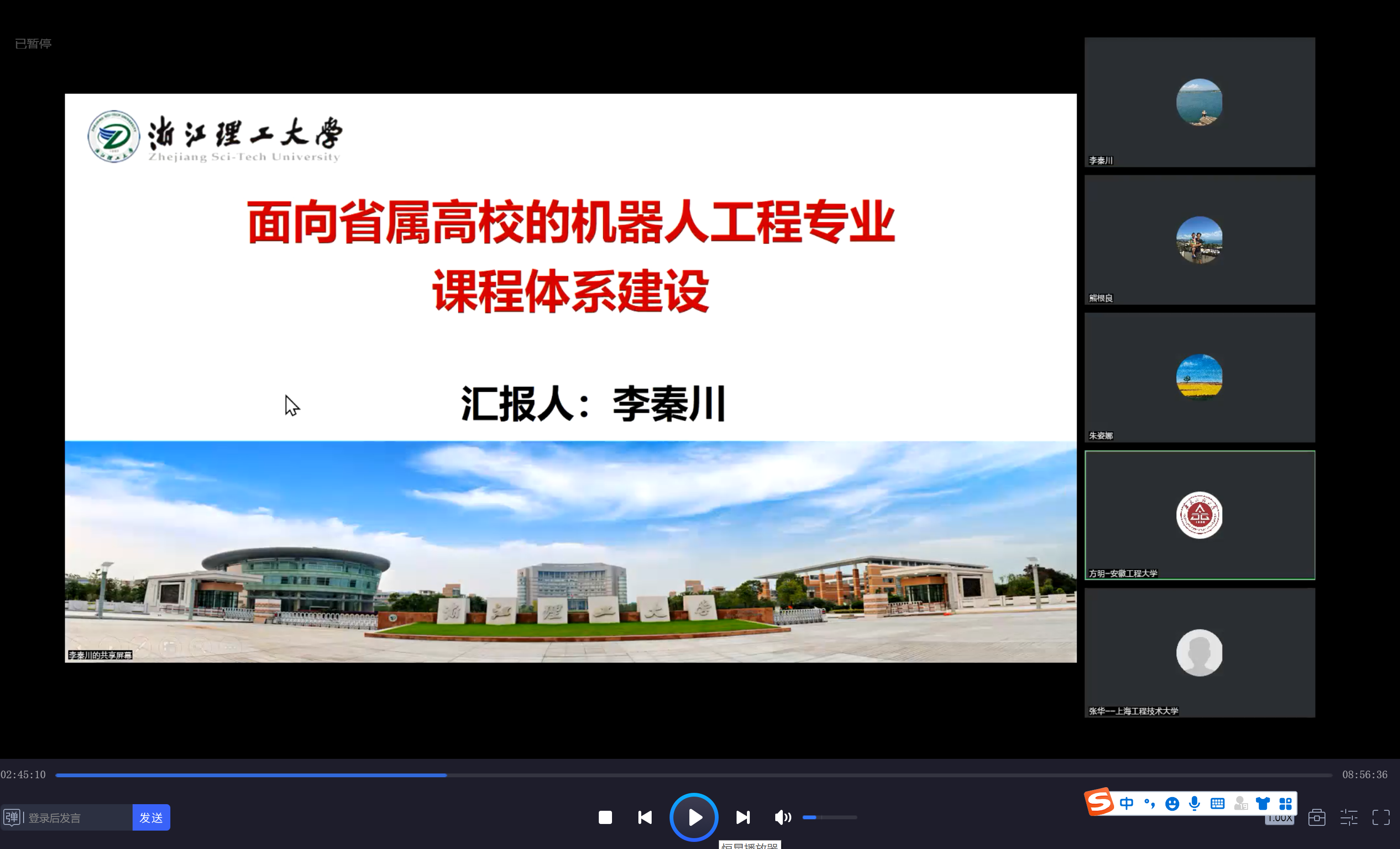 国家杰出青年科学基金获得者、科技部中青年科技创新领军人才、浙江省优秀教师、浙江省五一劳动奖章获得者、浙江理工大学机械工程学院院长李秦川教授以《面向省属高校的机器人工程专业课程体系建设》为题,介绍了机器人工程专业课程体系存在的问题、课题体系建设的举措以及课程体系建设的工作重点等,详细的阐述了浙江理工大学机器人工程专业在课程体系方面取得的卓有成效的工作。